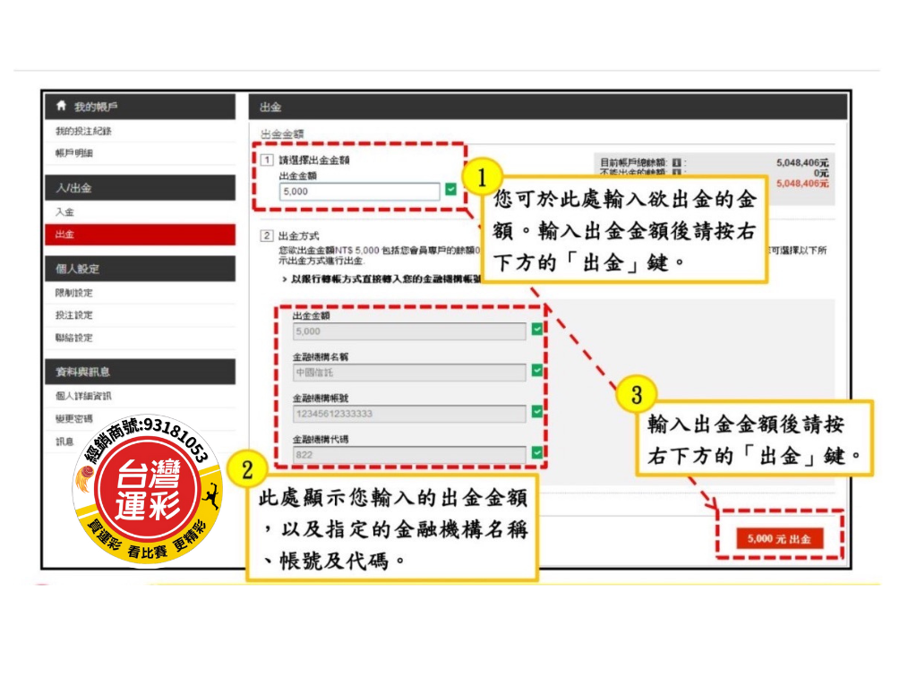 當您的出金申請成功後,款項會經由台灣運彩系統撥付並完成入帳處理。